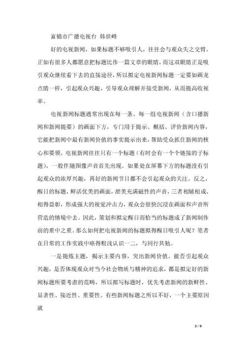 新闻标题的吸引力首先来自于它是否能迅速抓住读者的眼球。这就要求我们,在撰写标题时,必须紧跟时事热点,关注社会动态。比如,最近发生的重大事件、热门话题、公众人物的新动态等,都是我们选题的好素材。